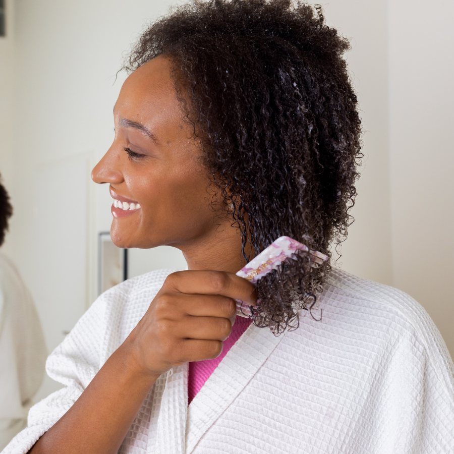 Dieser Locken Kamm hat glatte, abgerundete und besonders breite Zacken, welche sich perfekt zum Entwirren deiner Locken oder Wellen eigenen.